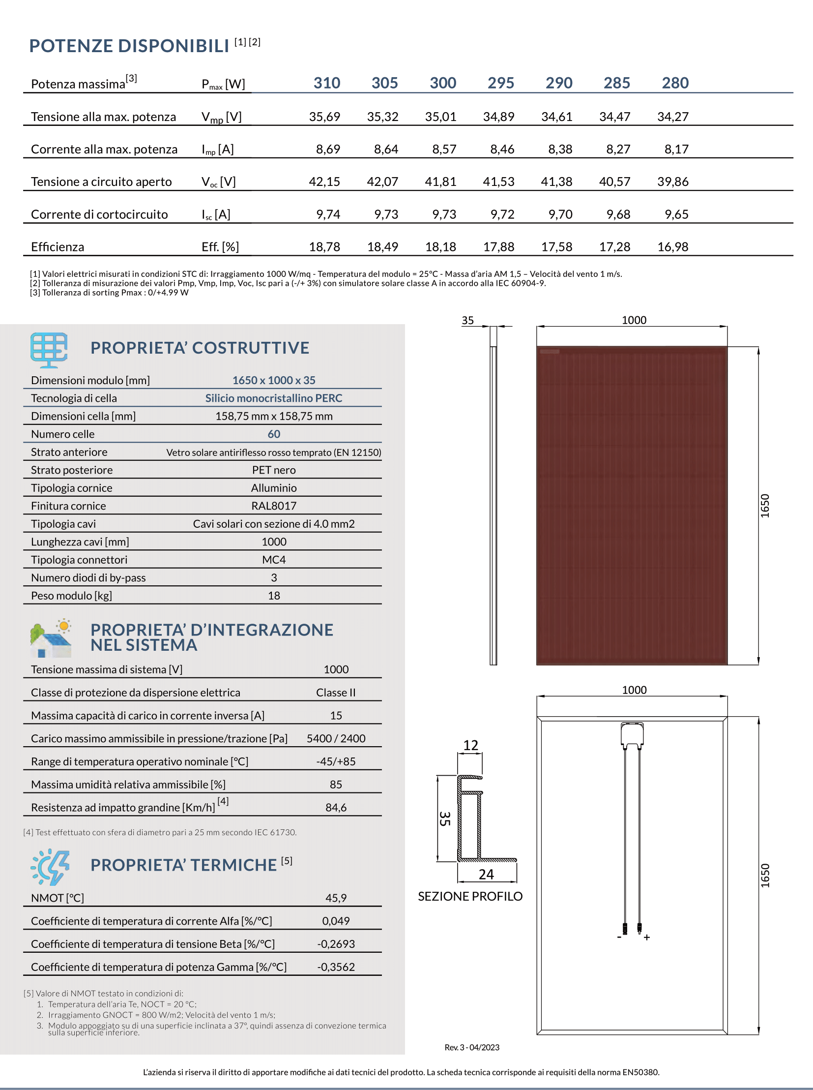 Potenza massima: 310 Wp